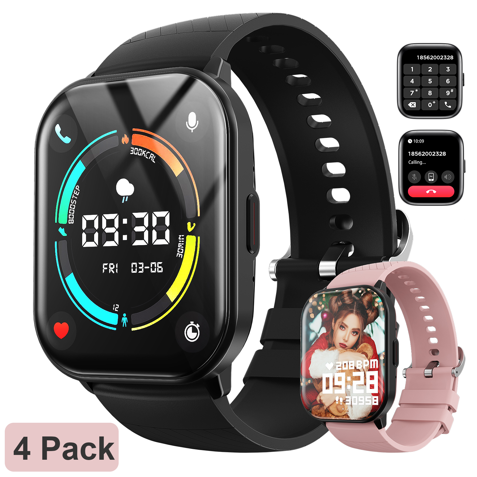 (4 pack) AUOSHI Smart Watch fits for Android & iPhone (Bluetooth Answer/Make Calls), 2.01 inch IP68 Waterproof Tracking Fitness, Sleep Monitor/Pedometer/Calories,Multiple Sports Modes,Black (4 pack) AUOSHI Smart Watch fits for Android & iPhone (Bluetooth Answer/Make Calls), 2.01 inch IP68 Waterproof Tracking Fitness, Sleep Monitor/Pedometer/Calories,Multiple Sports Modes,Black
