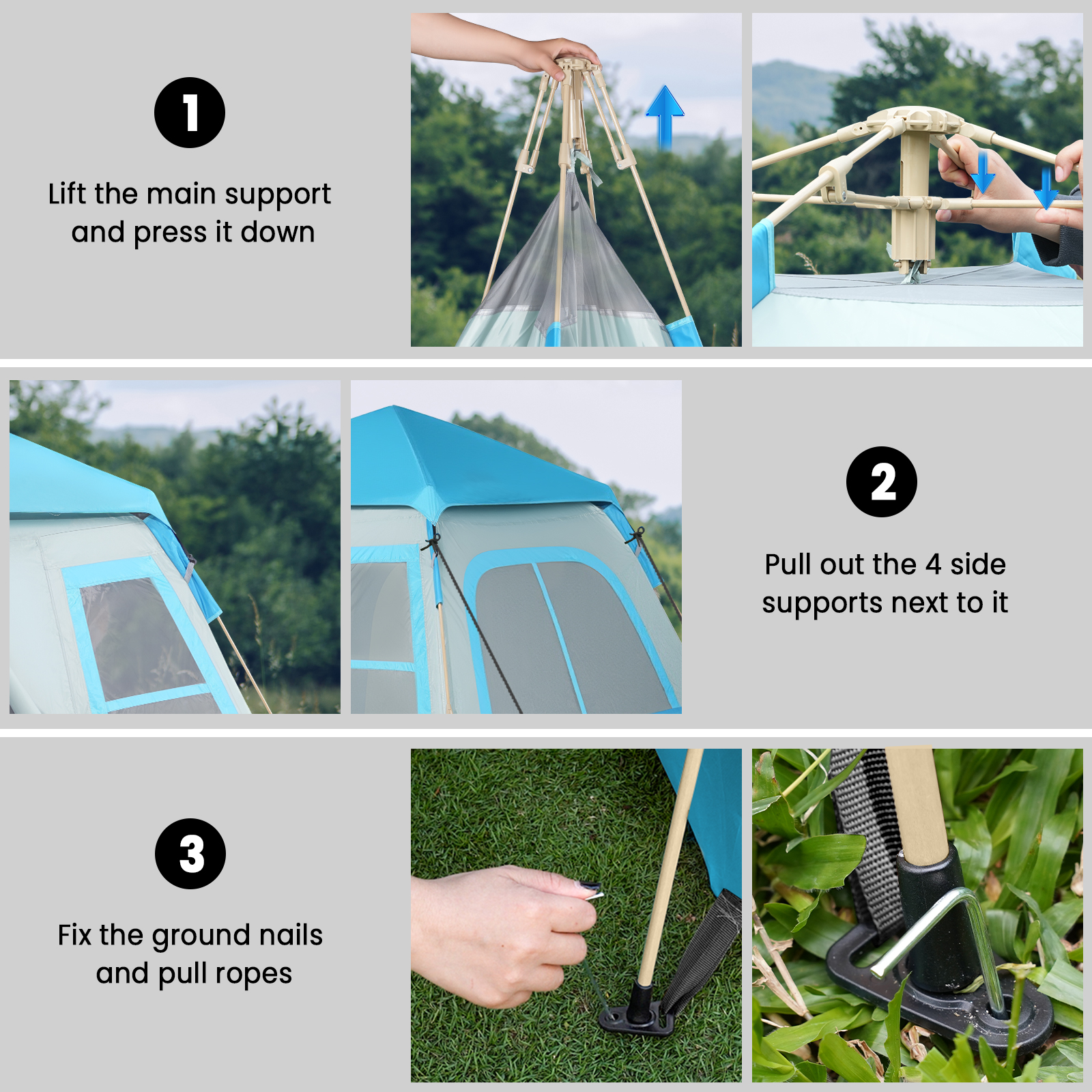 Effortless Setup: The thickening upgrade version auto-arching poles allow instant assembly with no complicated steps. Perfect for first-time campers or quick weekend trips.