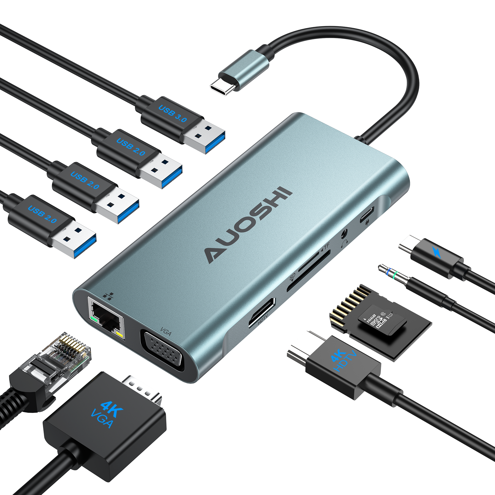 11 In 1 USB C Docking Station– USB C Docking is designed with 1 HDMI, 1 VGA, PD 3.0, 1 USB 3.0, 3 USB 2.0, RJ45 100 Mbps internet,, 3.5 mm Audio/Mic, SD and TF ports(parcel wont include SD or TF card), which meet all your connecting needs in a dock. It is compatible with all “full function Type C” laptops, supporting connection with USB drivers, HDMI monitor, VGA monitor, external disk and Internet simultaneously through one USB C port