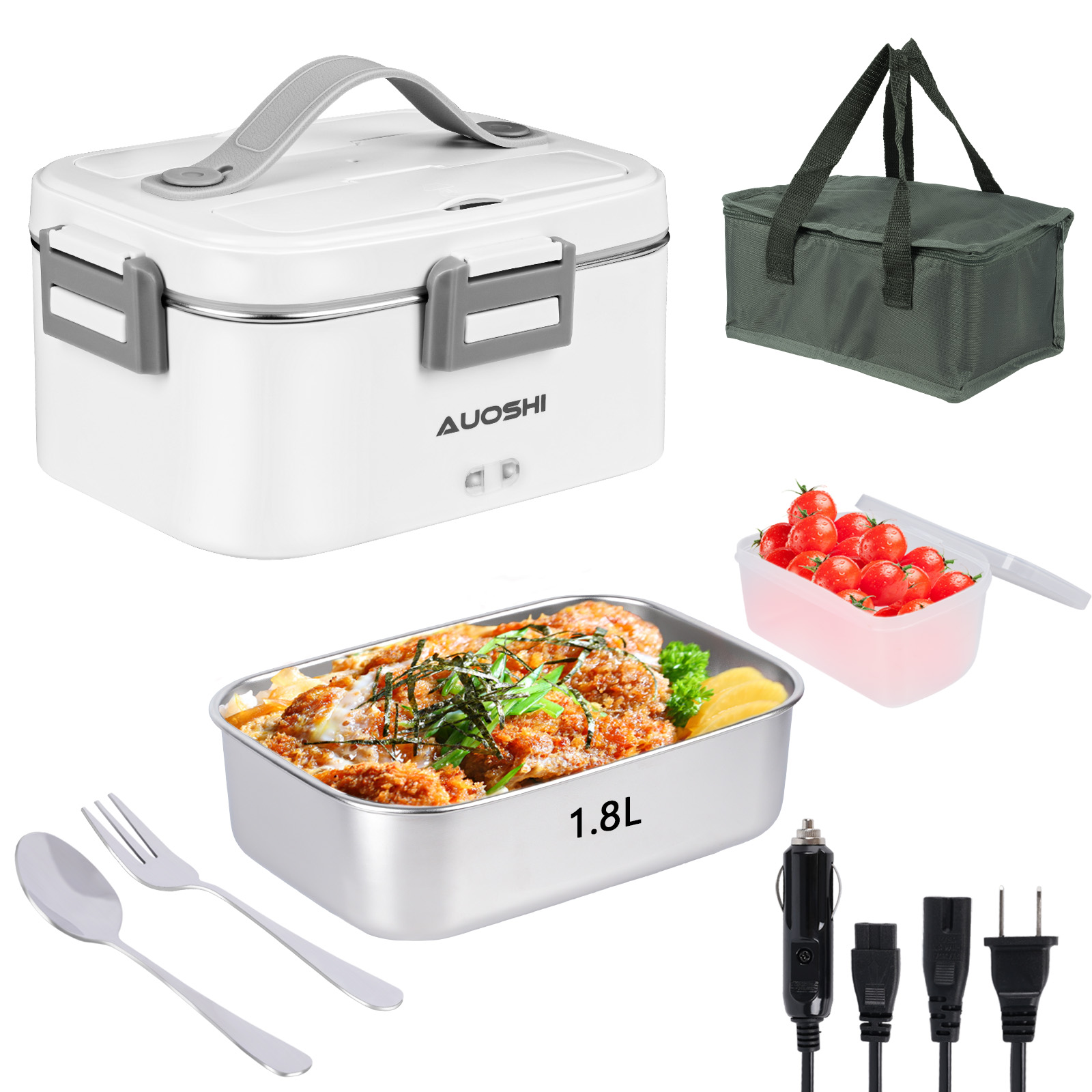 AUOSHI Electric Lunch Box 60-80W Heated Lunchbox for Adults Portable Food Warmer with 1.8L Stainless Steel Container/Fork/Spoon 12/24/110V Fully-Insulated Lunch Box for Men Women Car Truck Office
