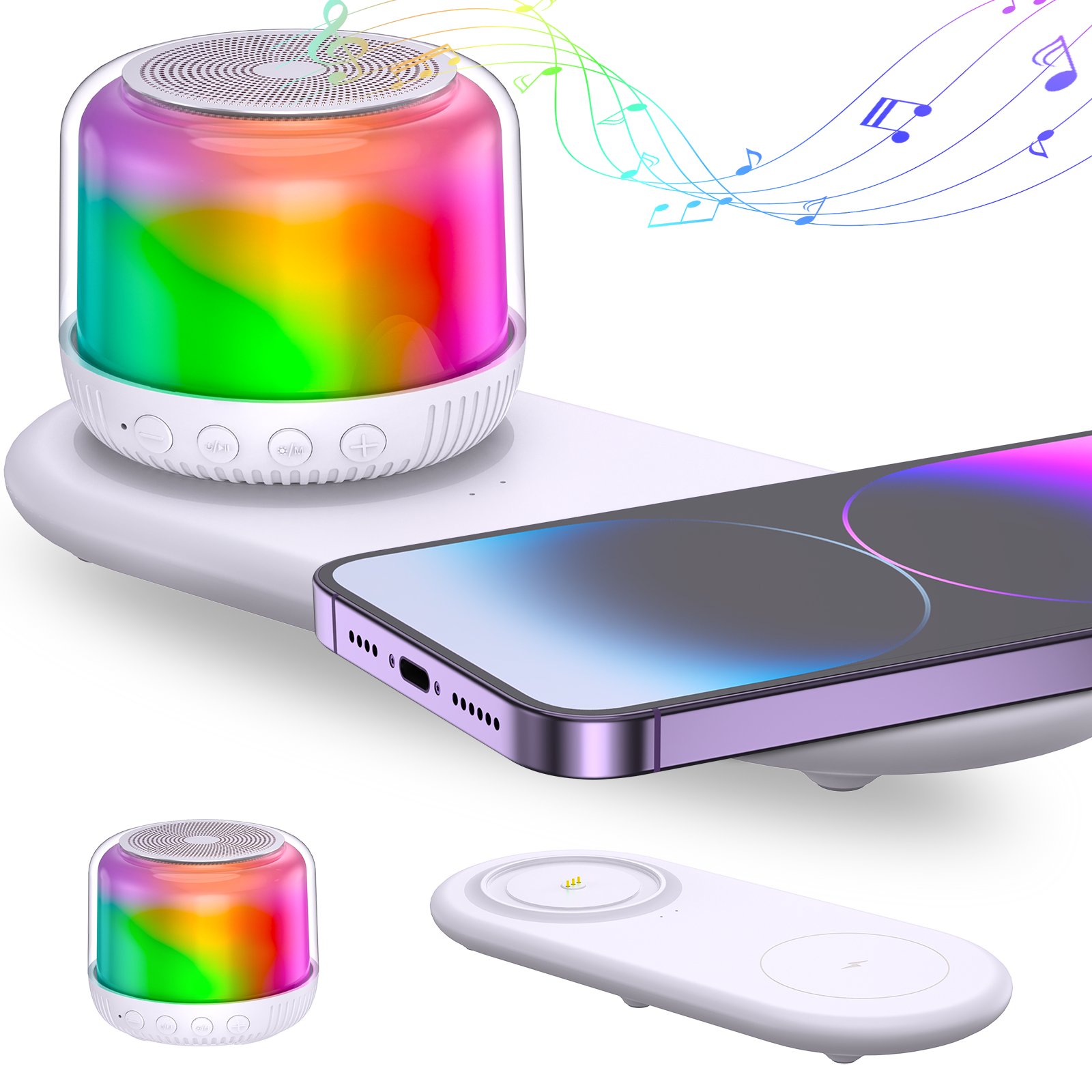 - [Best Gift Ideas]: This Bluetooth speaker with a wireless charger and night light is crafted from high-quality ABS material, ensuring safety and durability for any occasion. Perfect for bedrooms, yoga studios, modern offices, and baby rooms, and suitable for boys and girls of all ages. With its versatile functionality and modern design, this Bluetooth speaker is perfect for holidays and special occasions. It is an excellent gift for men, women, and teens such as Christmas, Thanksgiving, birthdays, anniversaries, Father’s Day, Mother’s Day, Valentine’s Day, and weddings.